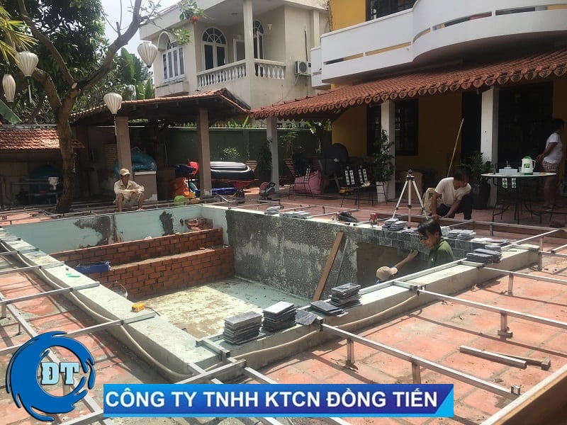 Công đoạn chuẩn bị ốp lát gạch hồ bơi