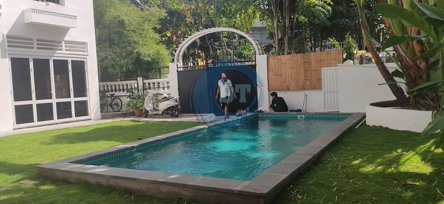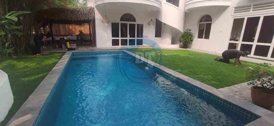 Trồng cỏ sân vườn xung quanh hồ bơi