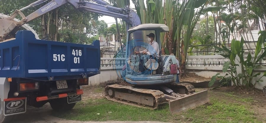Thi công đào đất hồ bơi theo định vị