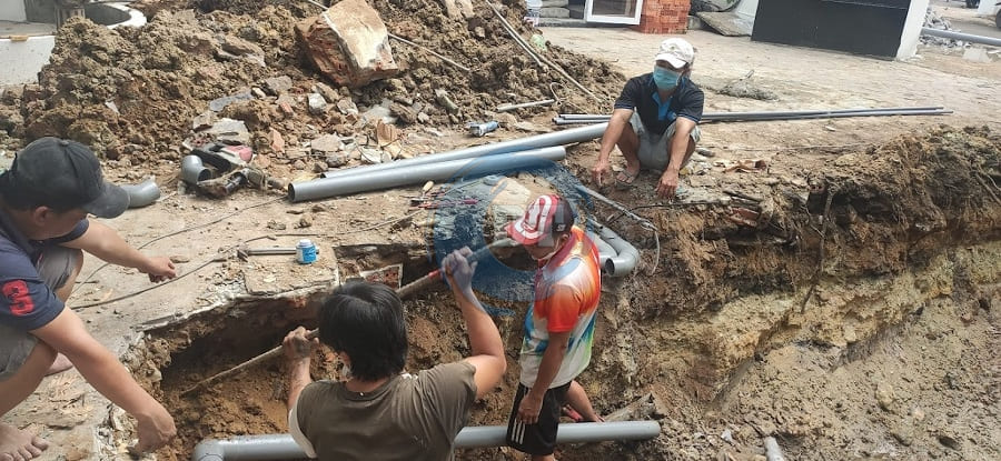 Đào móng ép cọc hồ bơi