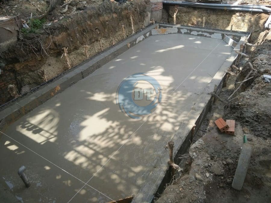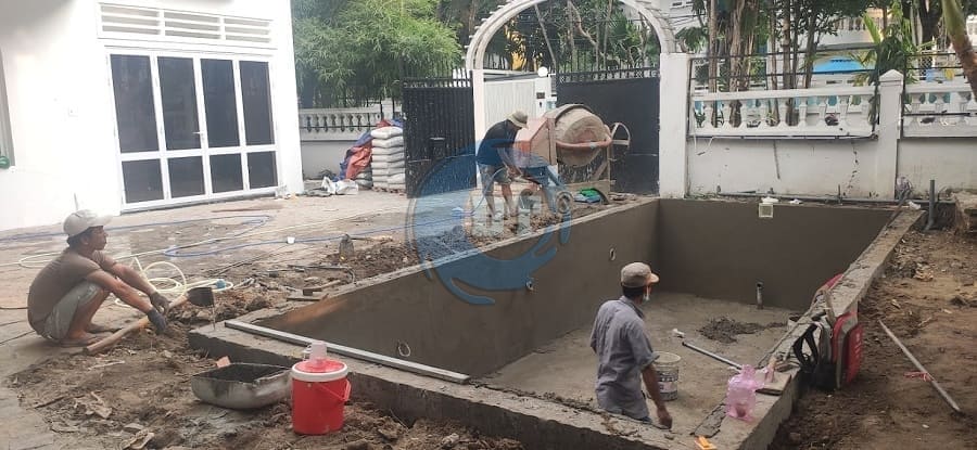 Lăm le lắp đặt sắt và đổ bê tông sàn hồ bơi