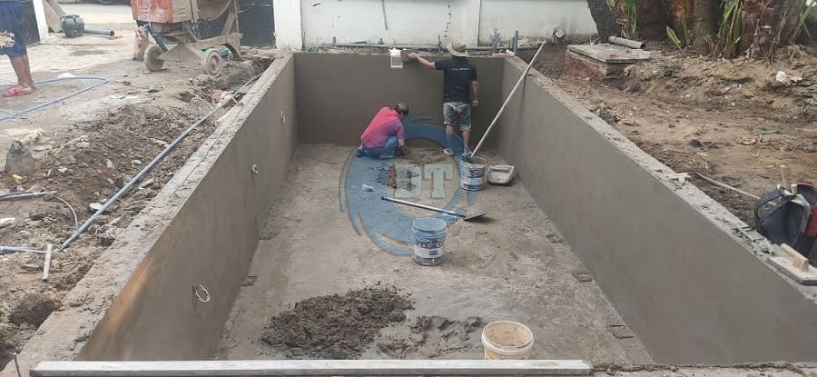 Lắp đặt sắt và bê tông thành hồ bơi
