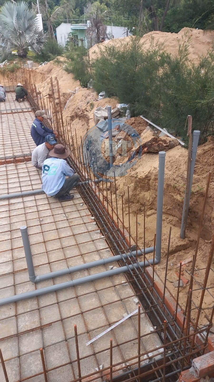 Công đoạn đan sắt đáy hồ và lắp đặt thu đáy hồ bơi