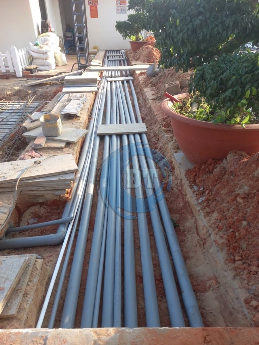 Lắp đặt đường ống hồ bơi về phòng kỹ thuật