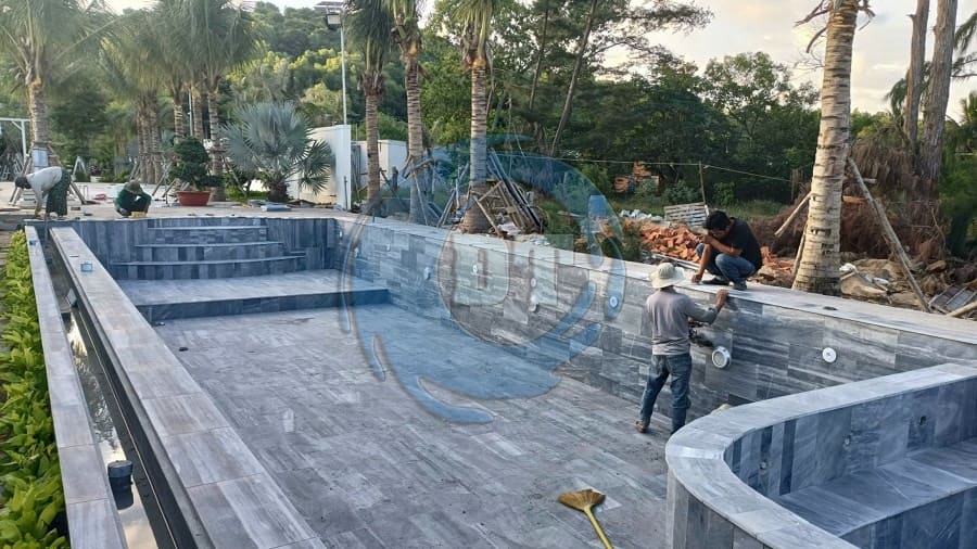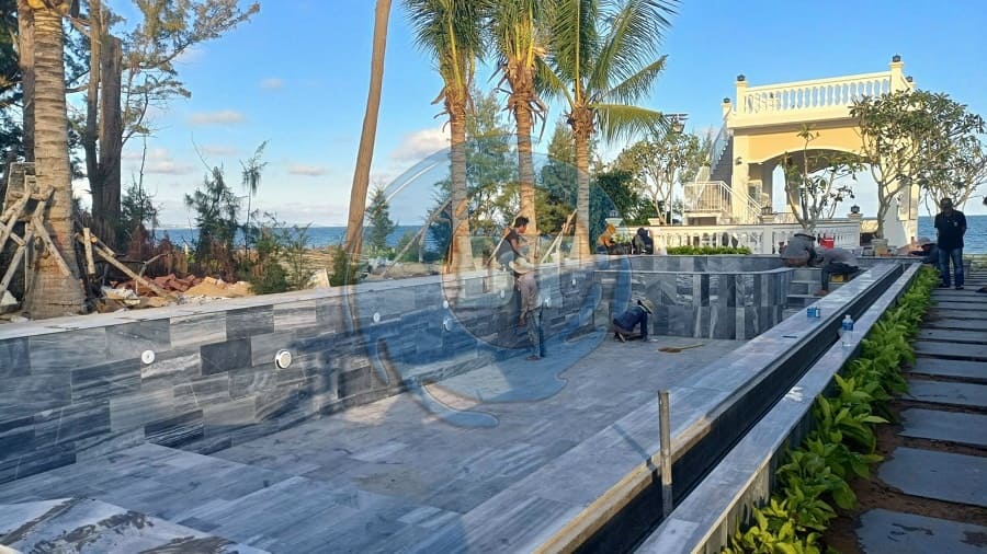 Ốp đá sọc dưa hồ bơi
