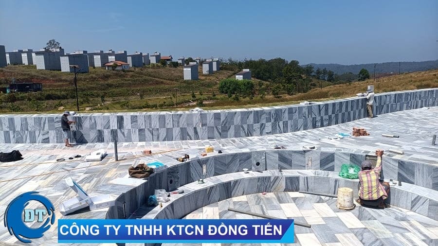 Đóng cốt pha, chống thấm và đổ bê tông hồ bơi