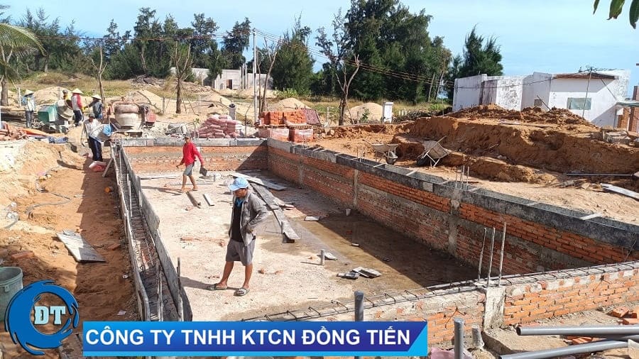 Công đoạn đóng cốt pha và đổ bê tông hồ bơi