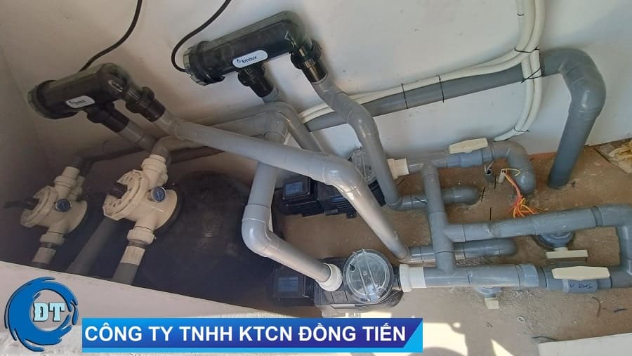 Lắp đặt thiết bị hồ bơi, công nghệ lọc tuần hoàn sử dụng nước biển điện phân muối