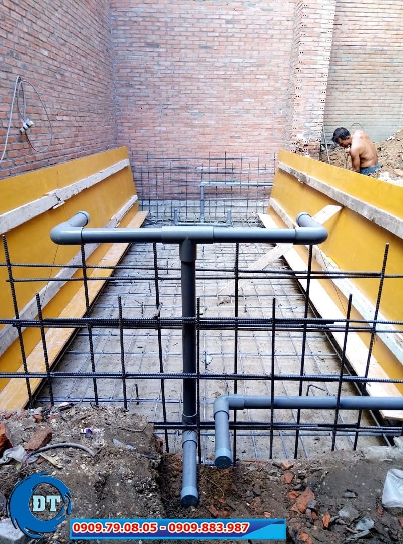 Công đoạn đan sắt hồ bơi và đi đường ống thu nước, trả nước cho hồ bơi