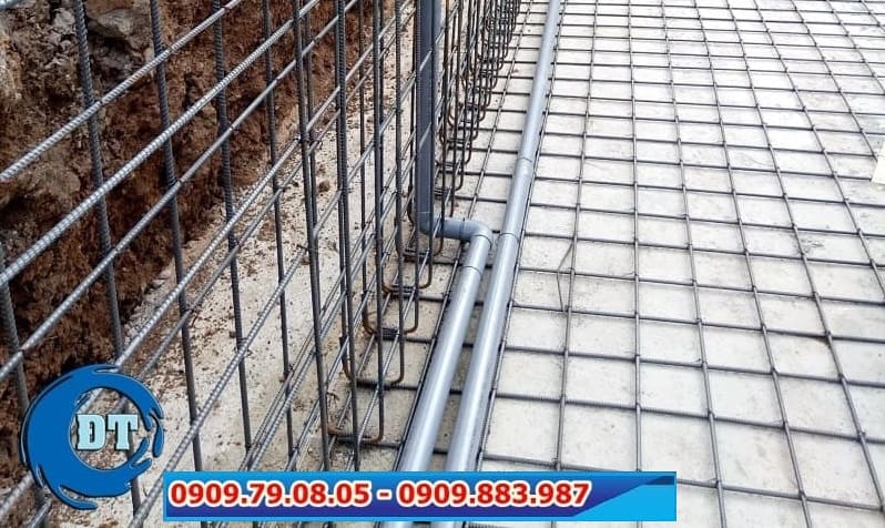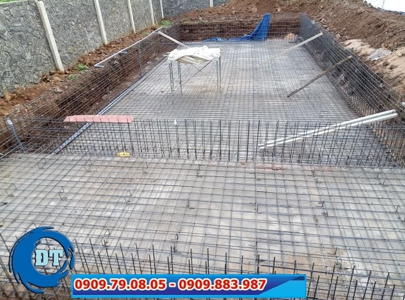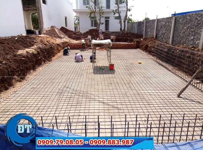 Công đoạn đan sắt và đi đường ống thu nước, trả nước cho hồ bơi